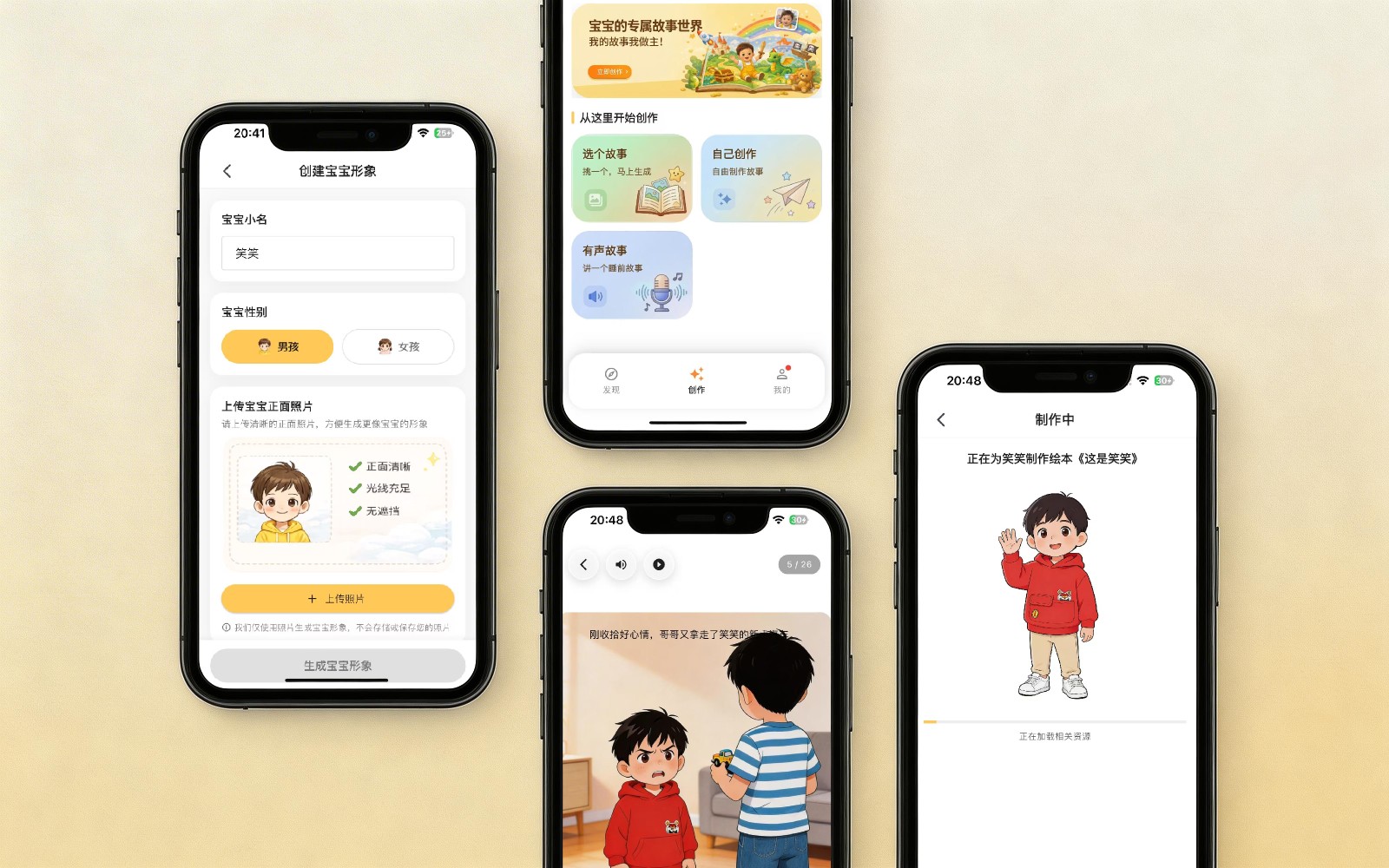从创建宝宝形象,到生成故事,再到手机里反复阅读,希望每一步都更轻松,也更适合陪着宝宝一起使用。